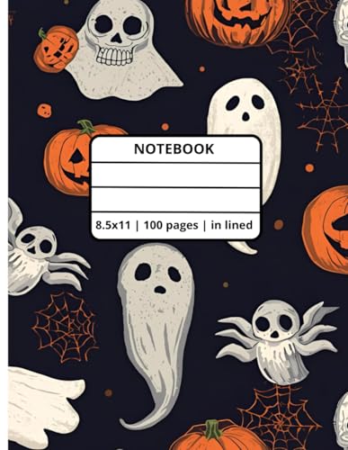 Hallowen Notebook 2025 | 8.5x11 | mate cover | 100 pages in lined: Cute halloween pumpkin ghost and spider web school diary for children
