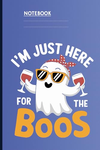 I’m Just Here For The Boos Cute Ghost With Sunglasses Holding Wine Glasses On Blue Cover: Notebook