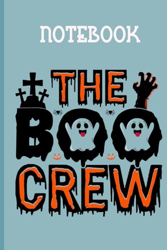 The Boo Crew With Image Horror Dark Pumpkin, Bat, Ghost Cute On Light Blue Cover Fun Gift For Everyone: Notebook