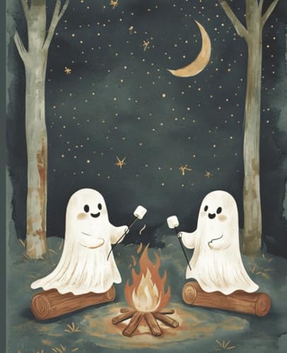 Composition Notebook | 120 Pages College Ruled | 7.5×9.25 in | Cute Ghost Halloween Campfire Cover Journal for School, Writing, Notes, and More