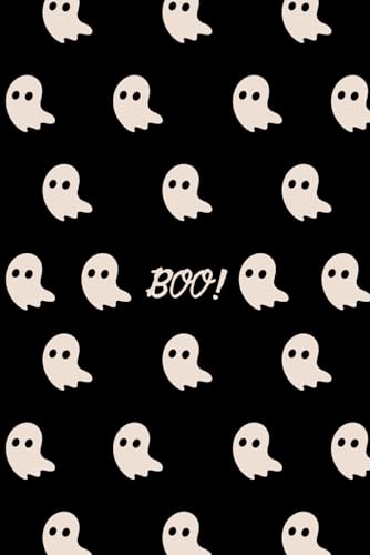 Boo! Ghost Pattern Notebook | Black Halloween Journal for Teens & Women | Minimalist Cute Ghost Design | Spooky Fall Aesthetic Writing Journal for Notes, Lists & Creative Ideas | Glossy Cover