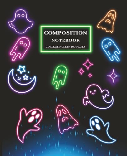Neon Ghost Composition Notebook: College Ruled, 100 Pages, 7.5 x 9.25 in | Glossy Cover Spooky Halloween Writing Journal
