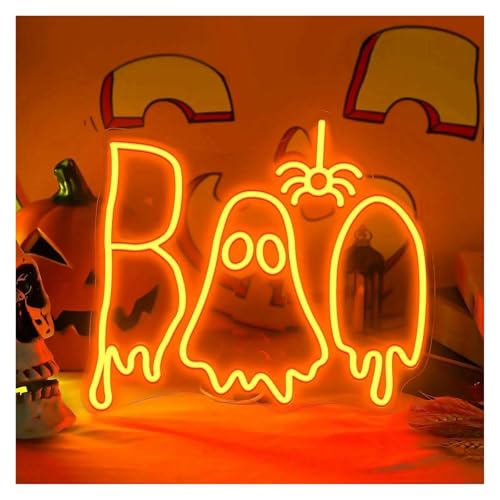 Hängande konst neonskyltar Spooky Ghost Spider Neon Lights USB-driven Justerbar Ljusstyrka Pumpa Neon Lights, Lämplig För Väggdekorationer 29,81cmx32,99cm