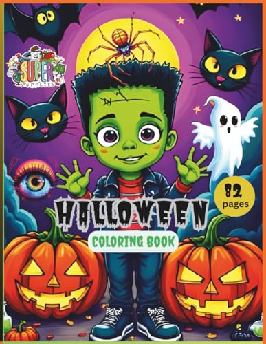 Halloween Coloring Book for Kids ages 4-8: Gift for Boys and Girls Children and Young adults 82 pages, Bold easy fun and cute scary creepy holiday ... Cartoon) spider, ghost, pumpkin, frankenstein