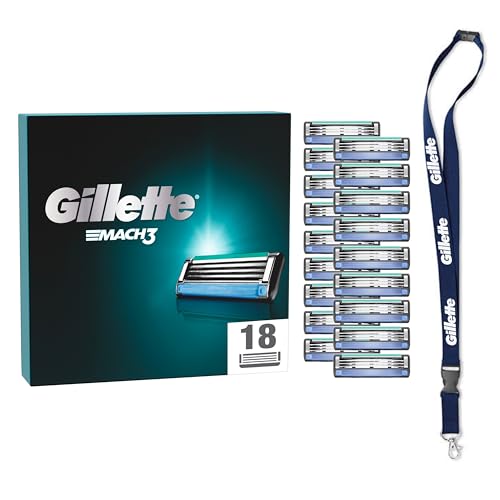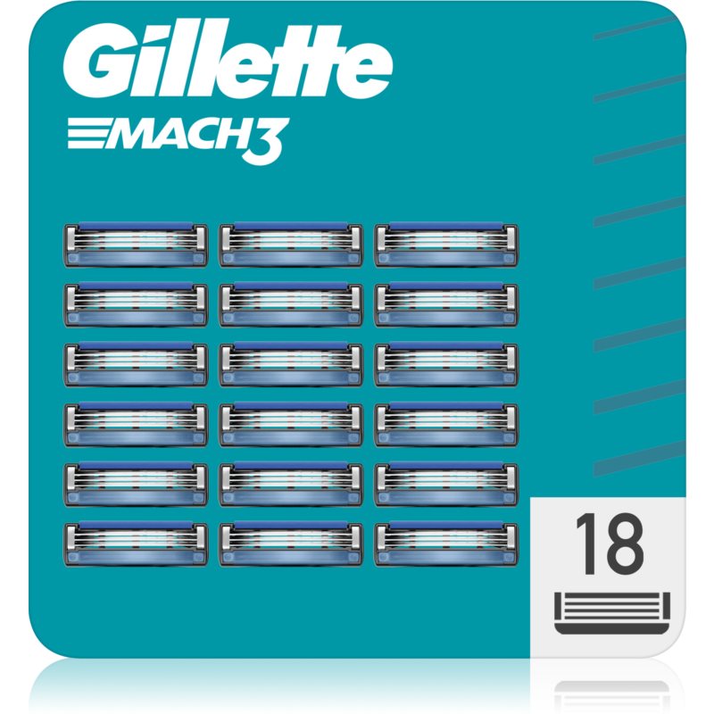 Gillette Gillette Mach 3 rakblad, 18 ersättningsblad för rakapparater, 3 blad, förbättrad glidning tack vare smörjremsor, nackband ingår