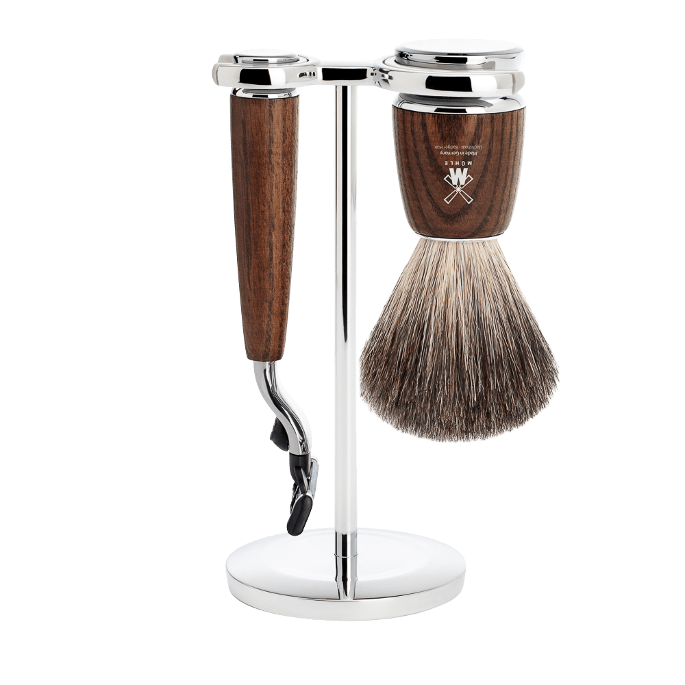 Mühle RYTMO Rakset (Färg: Ångat askträ, Rakborste: Pure Badger, Ställ: Utan skål, Rakhyvel: Gillette Mach3)