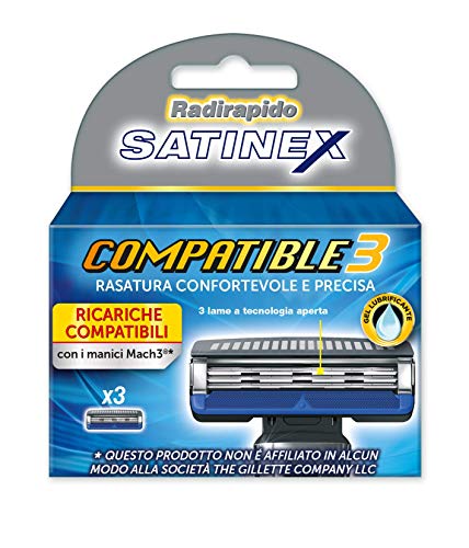Satinex Compatible-3 3-blad ersättningshuvuden (3 st Kompatibel med Gillette Mach Handtag - 3-30 Gr