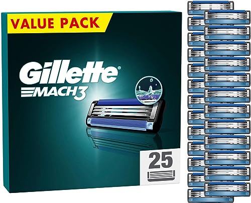 Gillette Mach3 rakblad för rakapparater, 25 ersättningsblad för rakhyvlar män med 3-faldigt blad