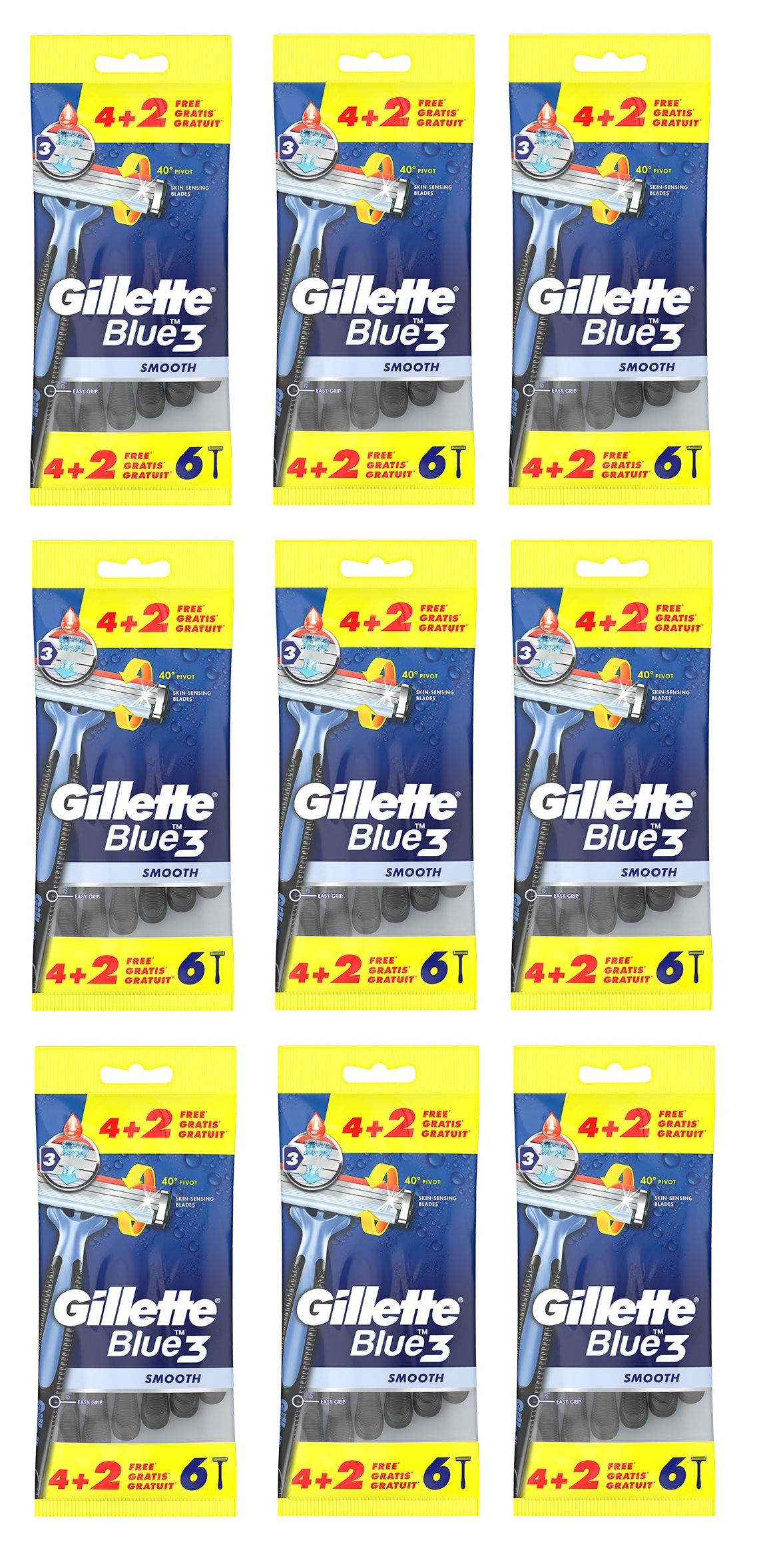 Gillette - 9 x Blue 3 Smooth Razors 6 pcs