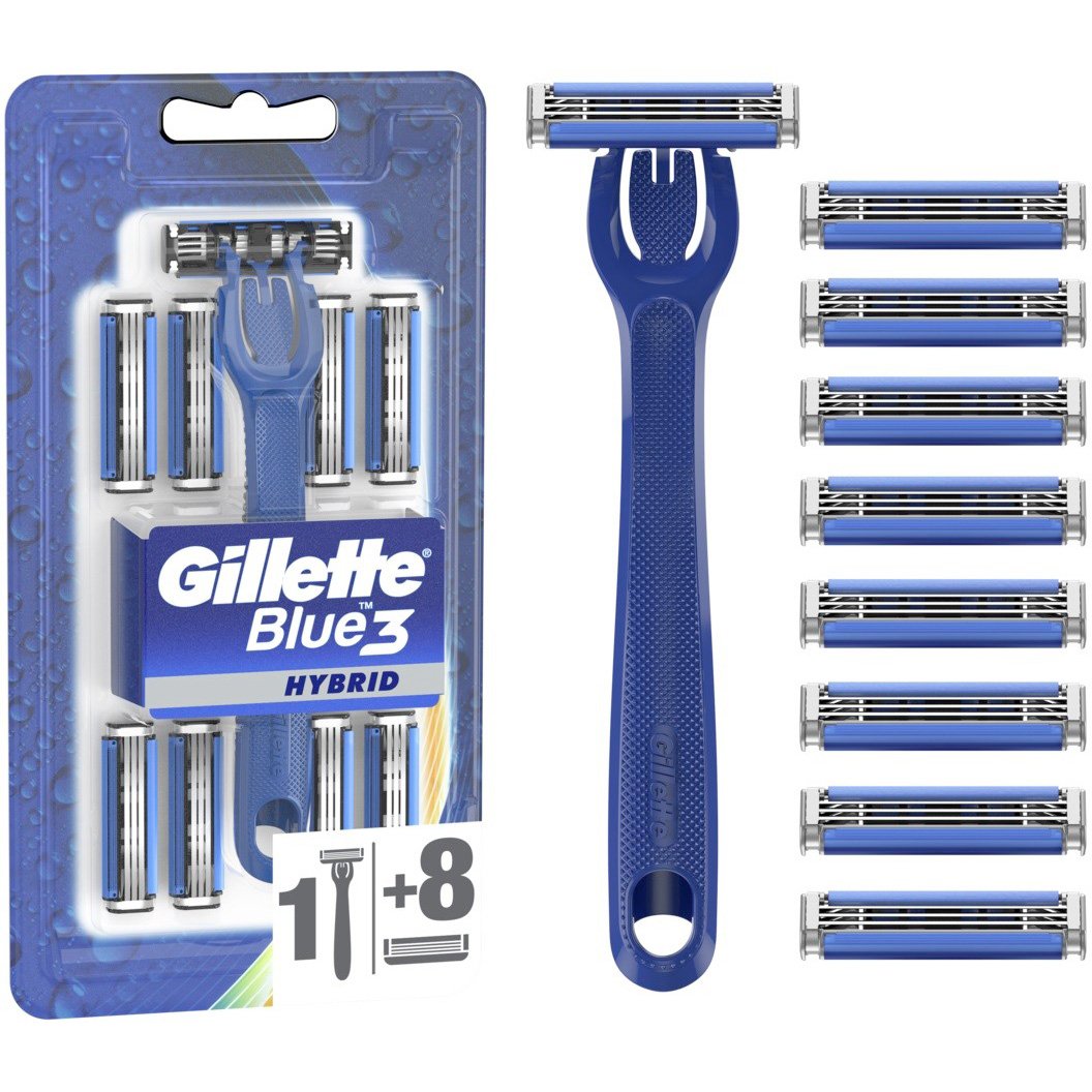 Gillette Blue3 Hybrid barberhøvel + 9 barberblader