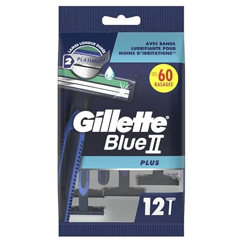 Gillette Blue II Plus engångs rakhyvlar x 12, med vattenaktiverat smörjband för mer glidning, två ultra-slipade blad med platinumbeläggning, för 5 nästan mjuka rakningar