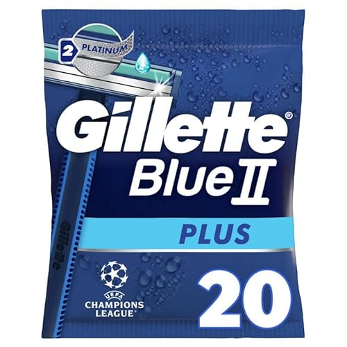 Gillette Blue II Plus engångs rakhyvlar x 20, med smörjband och två ultrapsade blad, för 5 nära rakningar