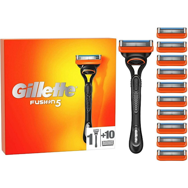 Gillette Fusion5 rakhyvel för män, 1 gillette rakapparat, 11 ersättningsblad, med glidremsor för smidig glid och 5 blad för en grundlig, långvarig rakning