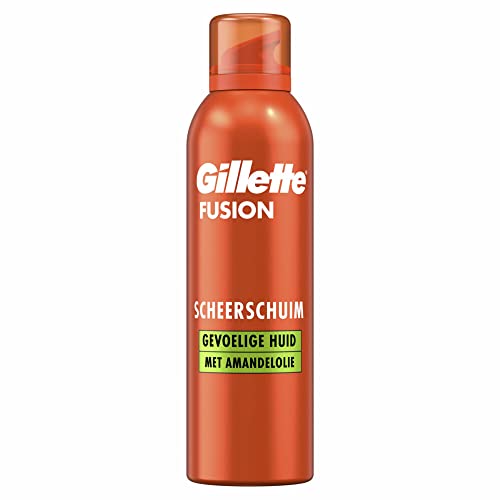 Gillette Fusion rakskum för män med mandelolja, för känslig hud, X5 åtgärder: Rengör, återfuktar, skyddar, fräschar upp och lugnar, 250 ml