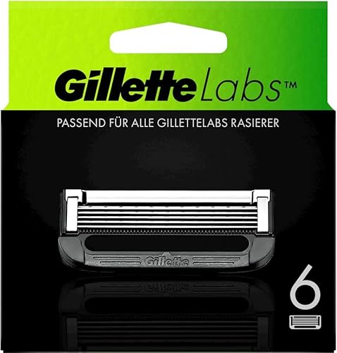 Gillette Labs ersättningsblad, kompatibel med GilletteLabs rakapparat med rengöringselement och värmande razor, 6 reservblad