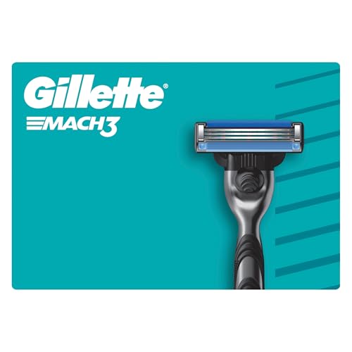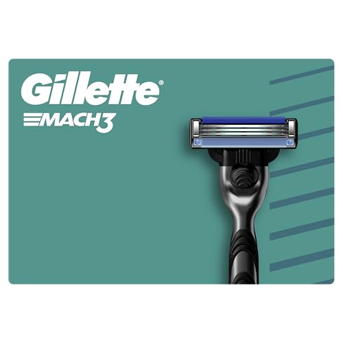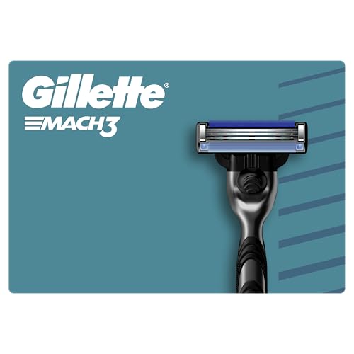 Gillette Mach3 rakhyvelbas för män med reservdelar, 1 handtag, 12 ersättningsblad med 3 blad och smörjgelband för en mjuk rakning