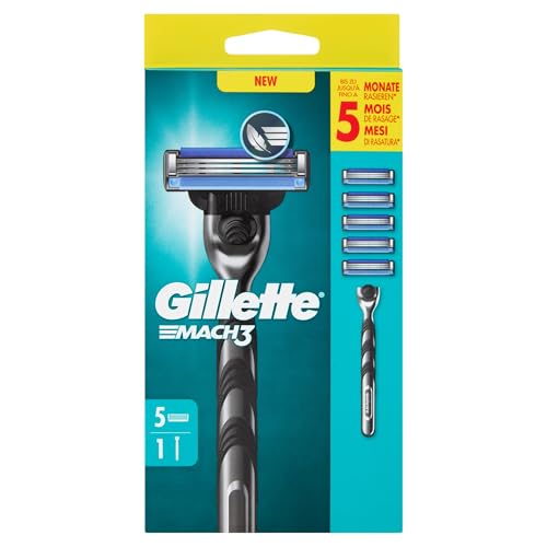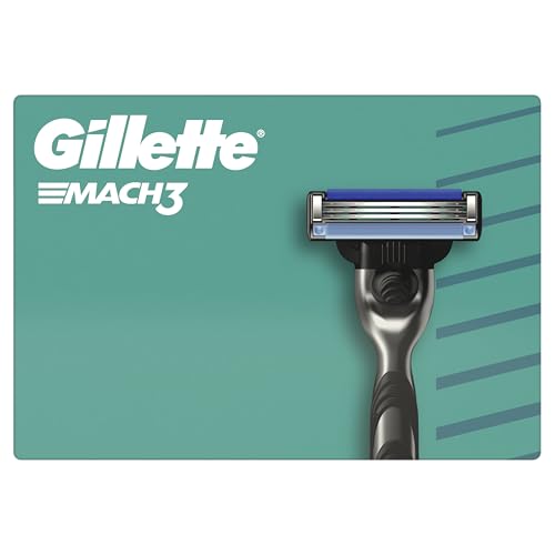 Gillette Mach3 Basis rakapparat för män, 1 gillette rakapparat, 1 ersättningsblad, med glidande remsa för smidig glidning och ny bladbeläggning, för mindre hudirritation
