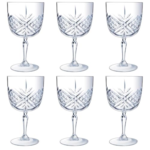 Gin Sul Gingglas set om 6 – Gin-tonic ballongglas med tryck – hög kvalitet, diskmaskinssäkra, magra copa-glas för drycker, aperitifer, cocktails – 19,5 x 10,9 cm – 620 ml