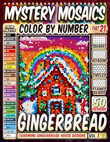 Cozy Gingerbread Houses Mystery Mosaic Color by Number: 50 Charming Gingerbread House Designs in Squares, Hexagons, Stained Glass, and Circles