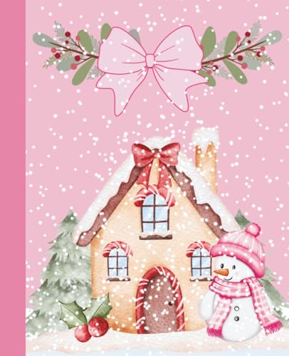 Pink Christmas Composition Notebook: College Ruled Journal for Girls and Women with Gingerbread House, Snowman, and Pink Bow | Perfect for School, Work, or Daily Notes