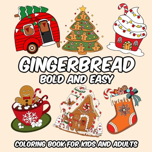 Gingerbread Christmas Coloring Book: Bold and Easy Coloring Pages About Christmas Holiday Gingerbread Man House for Kids and Adults