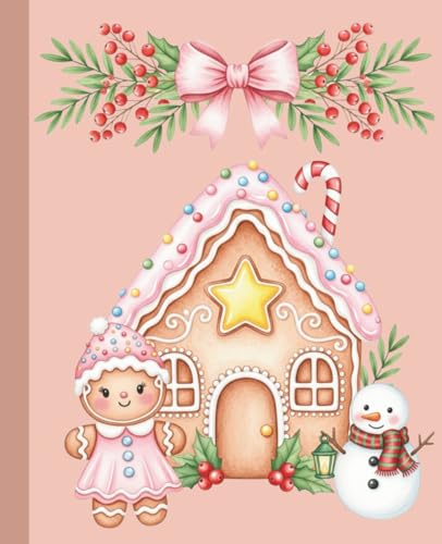 Gingerbread House Christmas Composition Notebook: A Cute Pink Holiday Journal for Girls and Kids featuring a Watercolor Gingerbread Girl, a Snowman, and Candy Canes - 110 Wide Ruled Pages