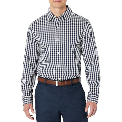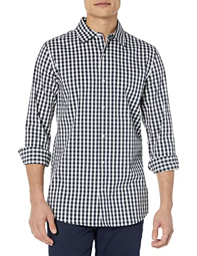 Amazon Essentials Herr Slim-Fit Långärmad Stretch Klänning Skjorta, Vit Gingham, X-Small