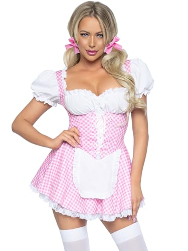 Leg Avenue 86987-12102 Gingham-klänning med snörning fram och bifogat förkläde, medium, rosa/vit kostym för vuxna, multi