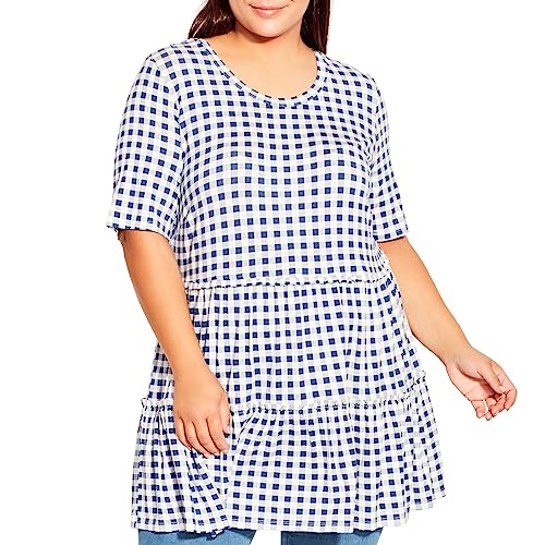 Avenue Dam plus size tunika Gus Gingham klänning skjorta, Ingido/vit, 48/50/Stor