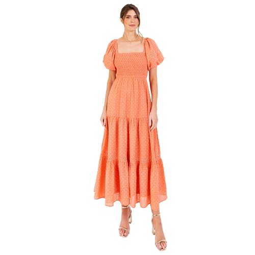 Lovedrobe Dam dam Midaxi klänning kort puffärmar fyrkantig hals rosett tie-rygg tröja A-linje gingham milkmaid Cottagecore, orange 36, apelsin, 36