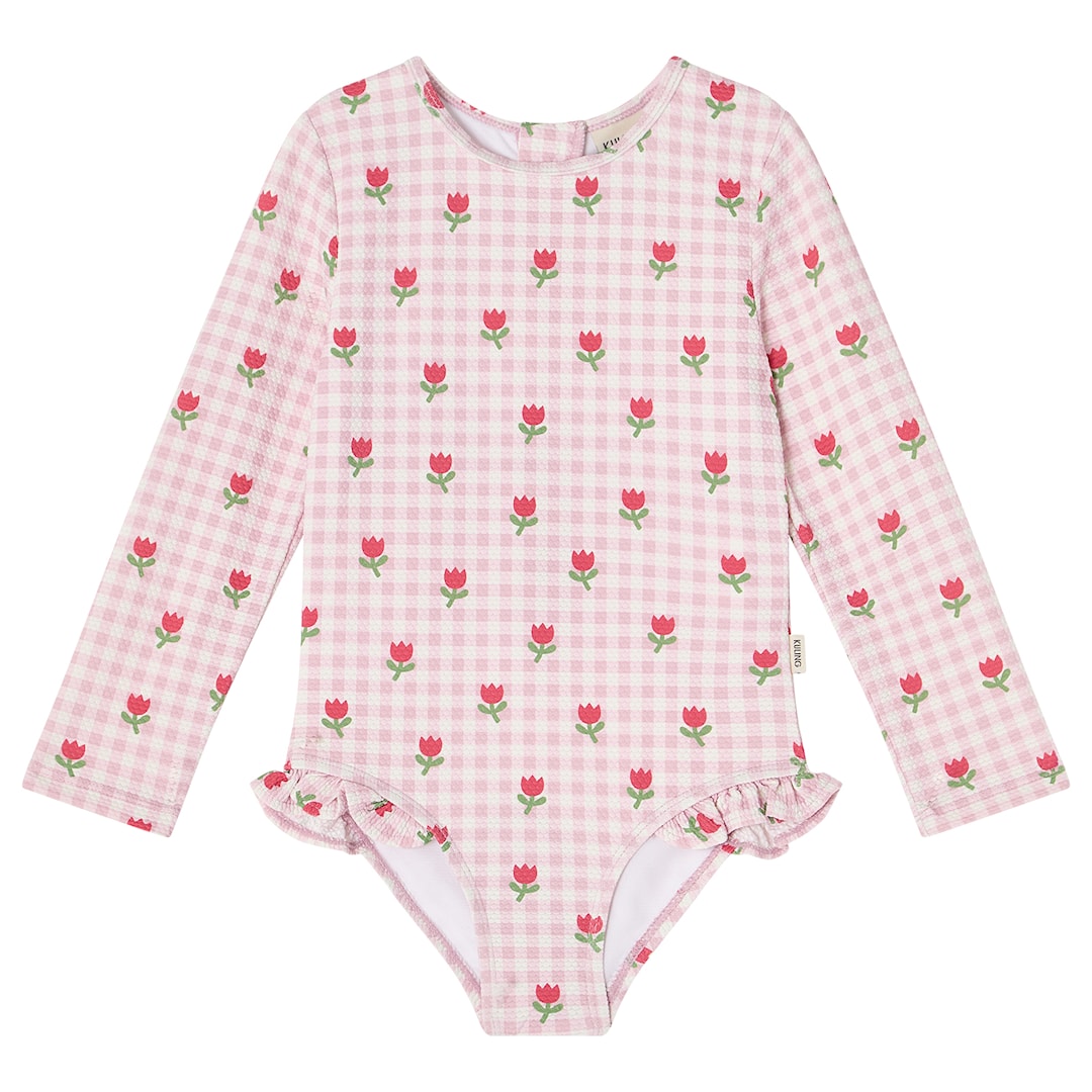 Kuling Antibes UV Baddräkt Pink Gingham Tulips Pink Gingham Tulips 110/116 cm Rosa 110/116 cm unisex