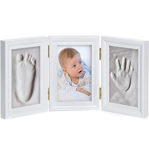 Baby Art Picture Frame, tredelad fotoram med gipsavgjutning för babyfotavtryck eller handavtryck, vackert minne, minnessak eller present, mått: 20 x 51 x 17 cm & fyrkantig, Essentials