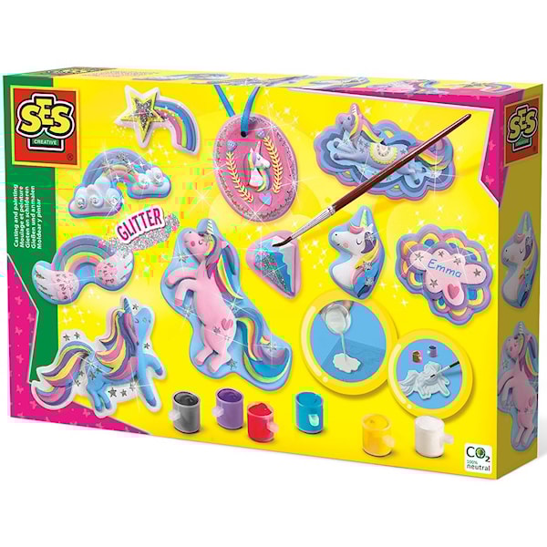 Pysselset Gipsfigurer Enhörningar med glitter SES Creative