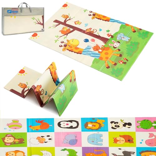 HUMBI Lekmatta baby, krypmatta, XPE-skum, dubbelsidig, flatbar, vattentät, extra storlek, matta babymatta, halkfri, 120 x 180 (djur, giraff)