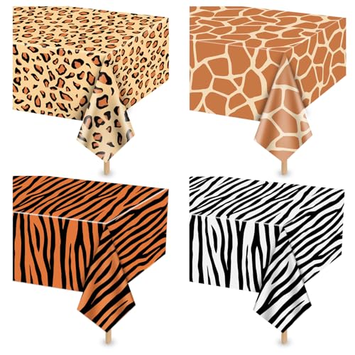 4 st djur tryck dukar, djungel djur tema bordsduk, rektangulär leopard tiger zebra giraff djungel bordsduk för zoo safari baby duschar djungeltema födelsedagsdekorationer