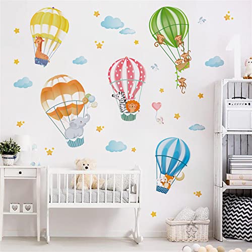 Decalmile djur i varmluftsballonger väggdekaler elefant giraff apa väggklistermärken baby barnkammare barn sovrum lekrum väggdekor