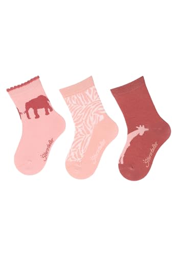 Sterntaler Strumpor 3-pack elefant, mönster och giraff – babystrumpor för flickor – babystrumpor med motiv – strumpor för spädbarn i en uppsättning, Mjuk rosa, 18 EU