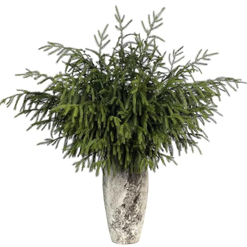 Norfolk-grangrenar, känns äkta – 45,7 cm, konstgjorda julgröna växter, grenar, grönt handtag, cederträplektrum för vaser, hantverk, girlang, krans, jul