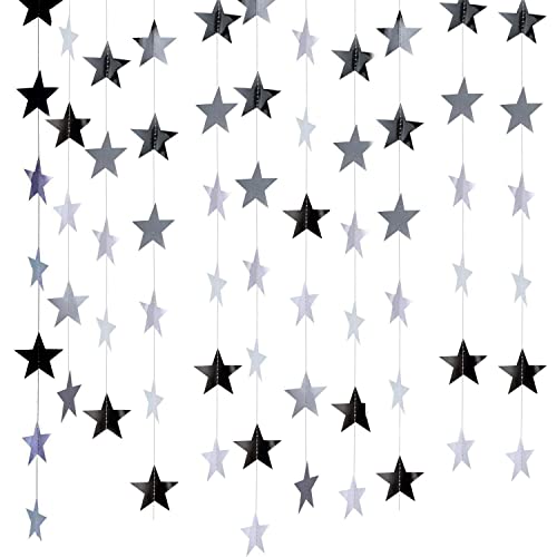 NITAIUN 65 fot stjärna papper girlang dekoration, pappersgirlang med silverreflekterande, hängande stjärngirlang, dekorationer för födelsedag festival barns födelsedag bröllop jul fest, 20 m (silver)