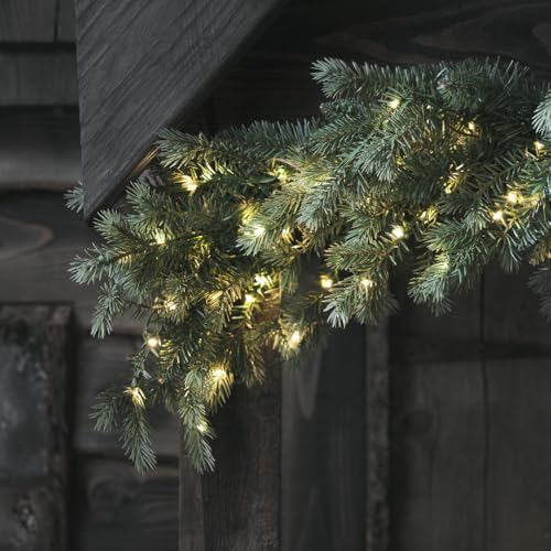 SHATCHI Grön/svart kejserlig furu girlang/krans jul hem kontor eldstäder trappor dekoration med icke förtänd (CW/WW/flerfärgade LED-lampor), enkel vit, 2 m