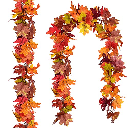 Artiflr 2-pack höst lönn girlang utförsäljning, 5,9 fot/strå hängande vinstockar lönnlöv girlang konstgjord höst lövverk girlang Thanksgiving dekor för hem bröllop öppen spis fest jul