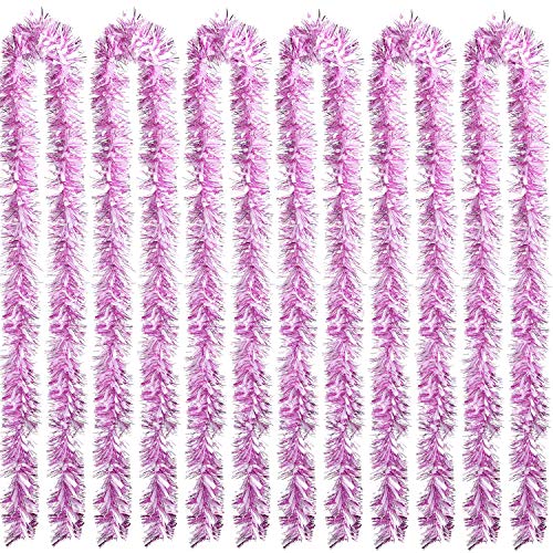 Sumind 6 delar julglitter 90 meter metallisk girlang glittrande hängande dekoration för julgran krans bröllopsfest tillbehör (rosa vit)