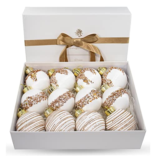 12 st satin julbollar, silke julgran hängande prydnader, Christma lyx heminredning för julgran krans girlang semester bröllopsfest dekoration (vit)