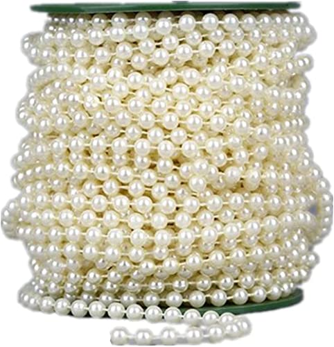 25 meter lång julpärla girlang falska pärlor kedja julgran girlang kedja dekorationer för julgran semester bröllop gör-det-själv dekoration tillbehör (6 mm/25 m/elfenben)