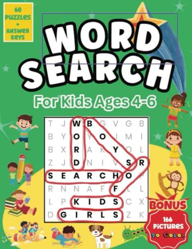 Kids Word Search Puzzle Book - Ages 4-6 Girls and Boys - Large Format 8X8 Grid - Includes 166 Illustration that can be colored.