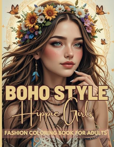 Boho Style Hippie Girls: Fashion Coloring Book For Adults: 100 Beautiful Boho Women with Floral Designs, Peace Signs & Hippie Patterns | A Relaxing ... Book for Stress Relief & Mindful Meditation