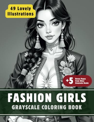 Fashion Girls Coloring Book: Grayscale Coloring Book for Adults with 49 High-Quality and Unique Illustrations for Relaxation and Stress Relief.
