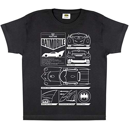 DC Comics Batman Batmobile Diagram flickor t-shirt | Officiella varor | Åldrarna 3-15, DC Comics-gåvor, Justice League Girls Fashion Top, Barnkläder, barn födelsedag presentidé, Svart, 12-13 År