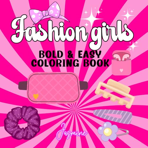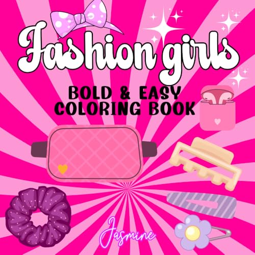 Fashion Girls Bold and Easy Mini Coloring Book for Travel (6" x 6"): Stress Relief for adults, teens and kids