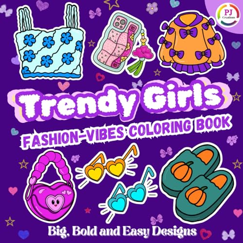 Trendy Girls Fashion-Vibes Coloring Book: A Stylish Coloring Book for Teens & Adults | 54 Cute, Big, Bold & Easy Designs for Relaxation Featuring Chic Clothing, Accessories & Vintage Fashion